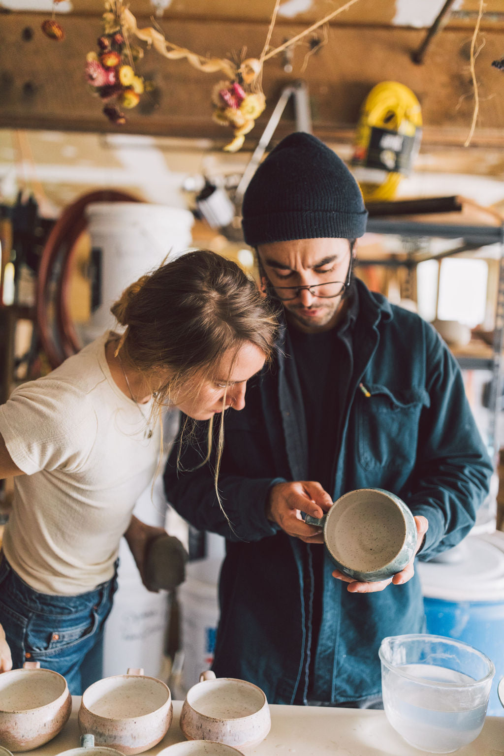 Her husband, Nick, with almost a decade of experience managing production in small craft shops, was asked to help out in the summer of 2022. He has become her partner in the business and taken over several key roles -- including trimming, pulling & attaching handles and processing the ever-present recycled clay supply.